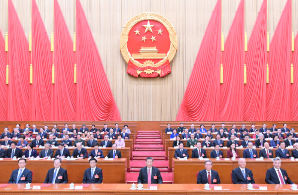 3月11日,第十四届全国人民代表大会第二次会议在北京人民大会堂闭幕。党和国家领导人习近平、李强、王沪宁、蔡奇、丁薛祥、李希、韩正等在主席台就座。新华社记者 谢环驰 摄